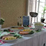 Teijo Churchから2.5キロメ-トル離れた所に位置する3つ星ホテル Kirjakkalan Ruukkikylae Teijoは,川の景色を望む客室が11室あります. ビュッフェスタイルの朝食とテラスを楽しむことができます.